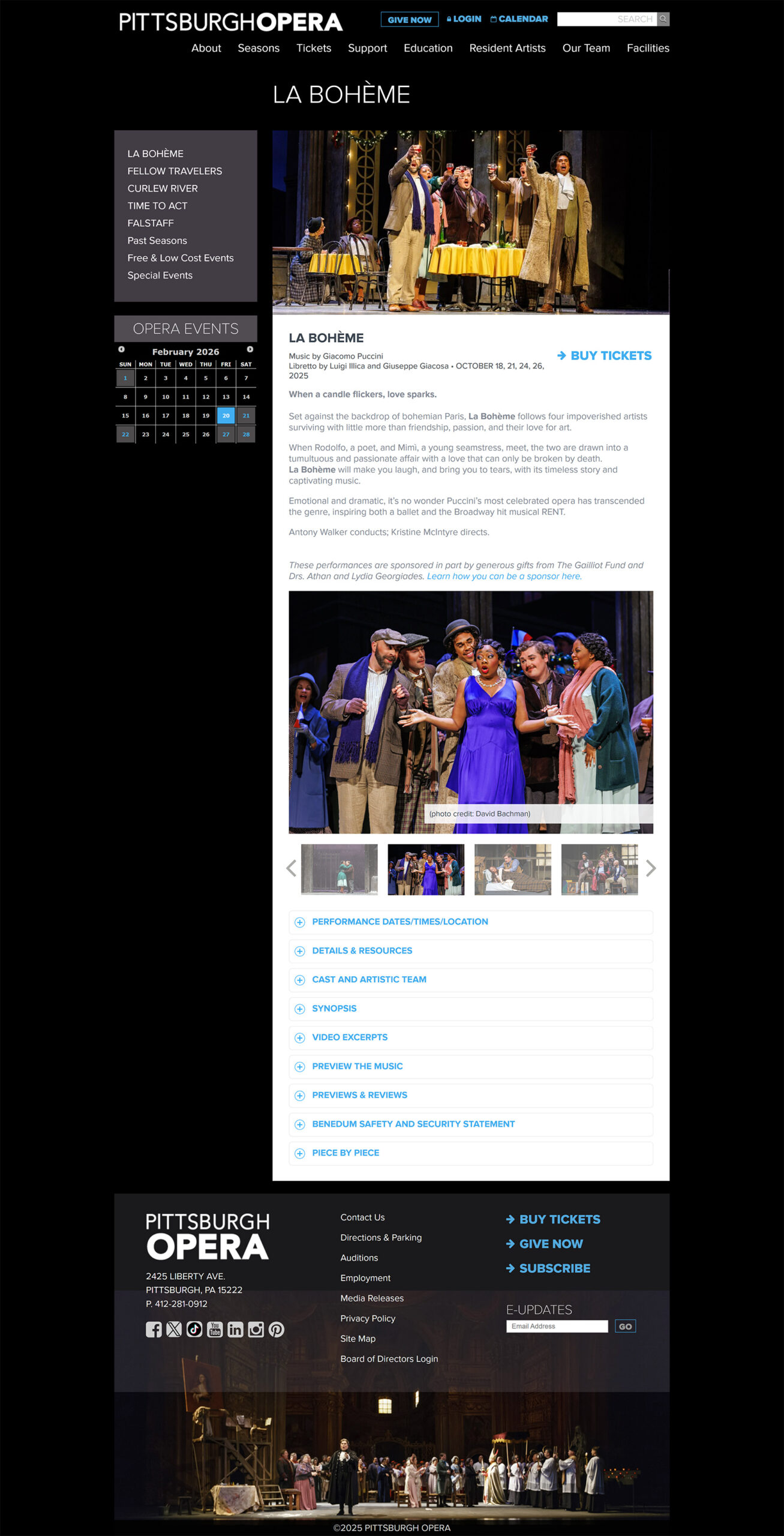 Pittsburgh Opera needed a website that could manage decades of performances while remaining easy for audiences to explore. Seasons include multiple productions, and each production contains numerous performances, media assets, and ticketing details.